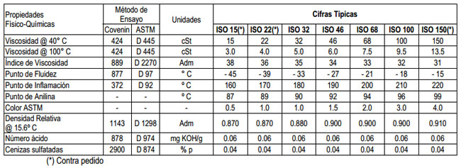 máquinas que operan a bajas temperaturas ambientales. Por su gran estabilidad térmica, su composición de