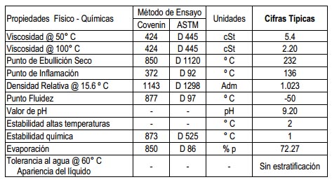 Fluido formulado con compuestos especiales para lograr un alto punto de ebullición (superior a 240 ºC) que