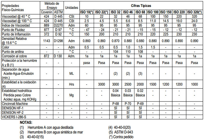 aditivos antidesgaste, antiespumantes, antiherrumbrante y antioxidantes. Tiene buena capacidad de separación de agua