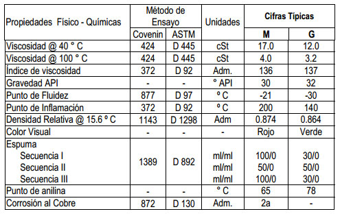 buena estabilidad, bajo punto de fluidez y alta lubricidad. El grado M cumple con la especificación MONROE