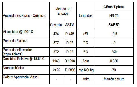 CILMAR 70 (SAE 50, BN 70) es el lubricante más ampliamente usado en motores operando con